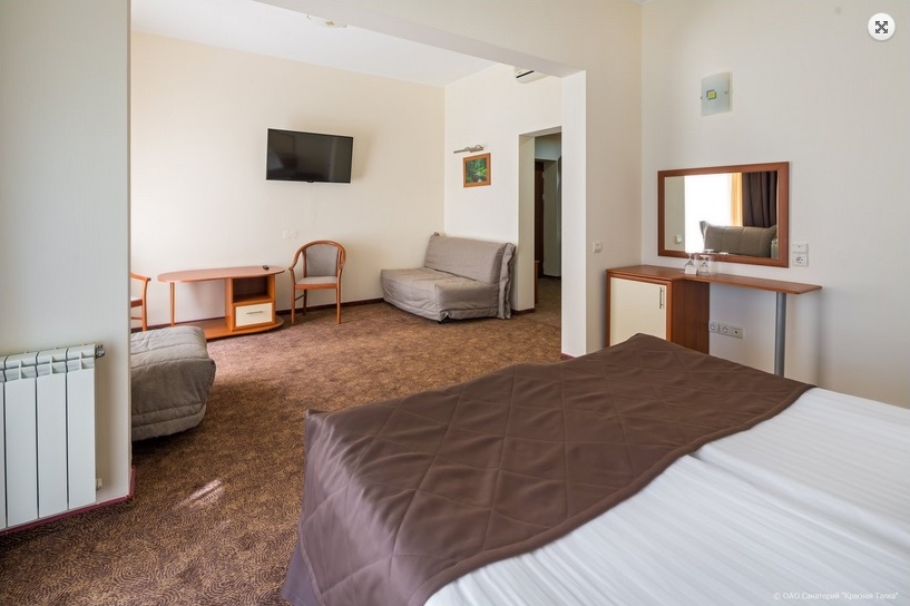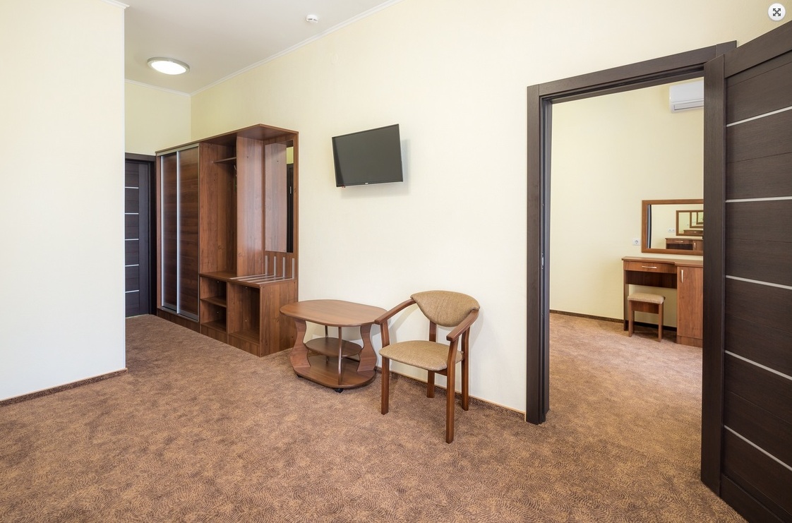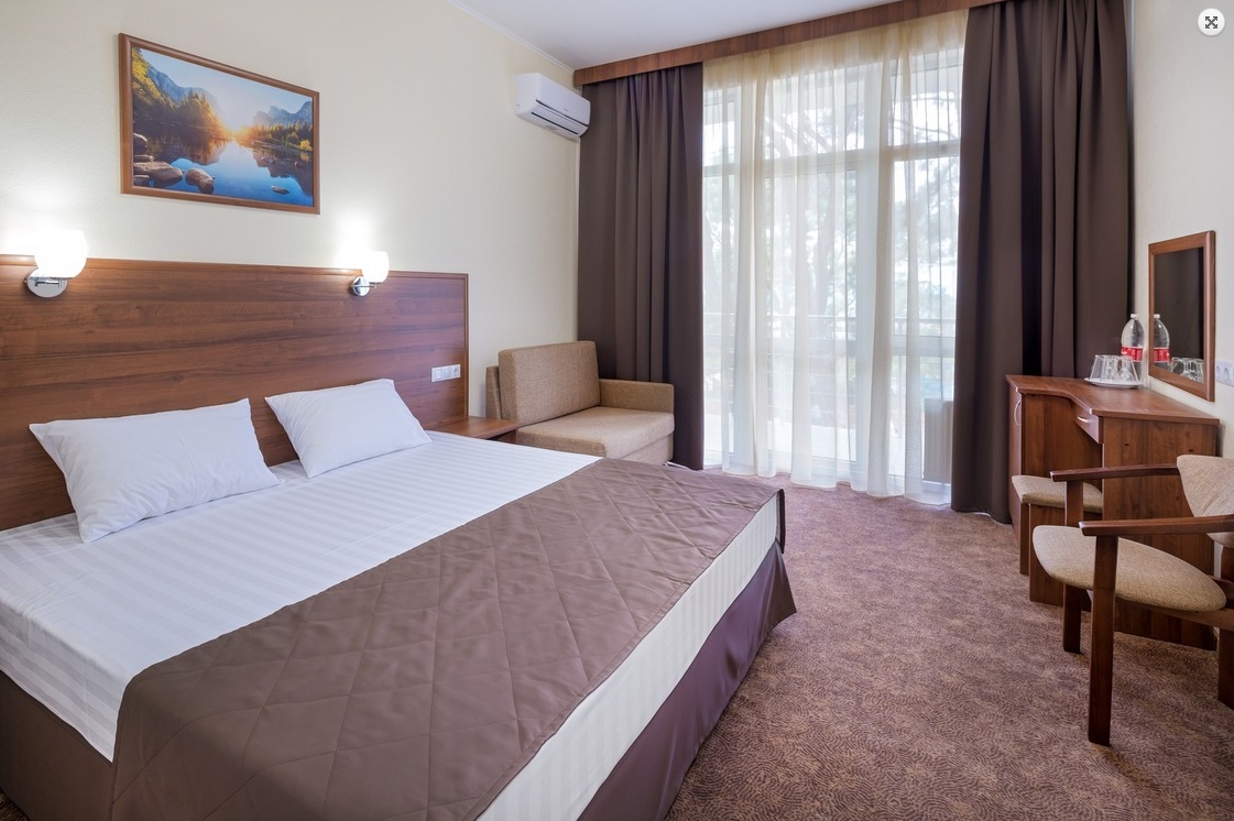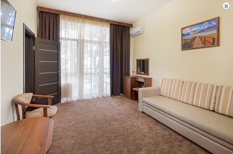 Оснащение номера: Все номера с большой кроватью и дополнительным местом, балконом, полным санузлом, феном, сплит-системой, мини-холодильником, телевизором. Данные номера отличаются большей площадью по сравнению со стандартными номерами