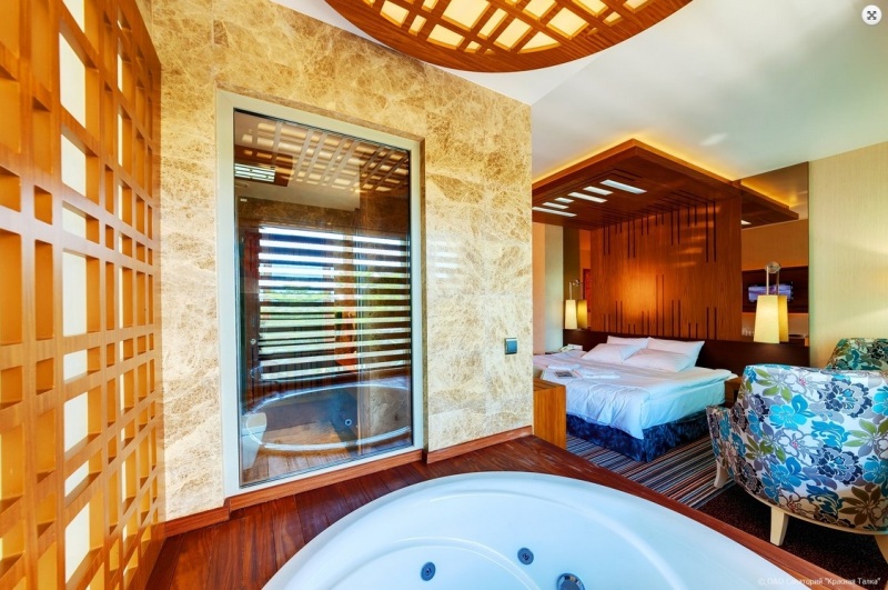 Оснащение номера: большая французская кровать, ванная комната с набором полотенец, фирменной косметикой, феном, душевой кабиной, джакузи с видом на море, а также автономная система кондиционирования, укомплектованный мини-бар (без алкогольных напитков), телевизор, телефон, мини-сейф