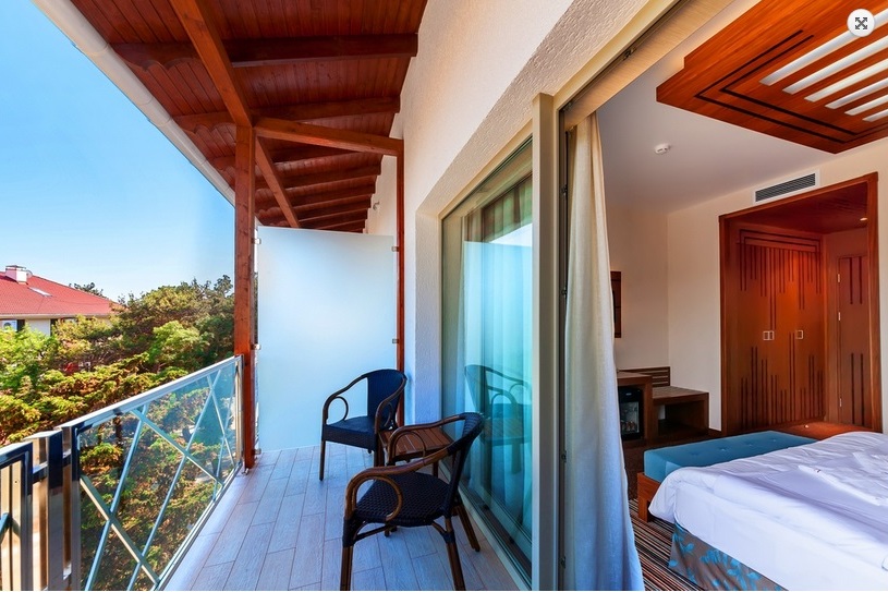 Двухместный однокомнатный номер категории Джуниор Сюит с дополнительным местом (диван) и балконом. Площадь номера без учета санузла и балкона составляет 30 м2, санузел - 5 м2.