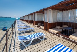 - Оборудованный пляж (шезлонги, зонтики и теневые навесы, душевые, туалеты) (работает по сезонам)