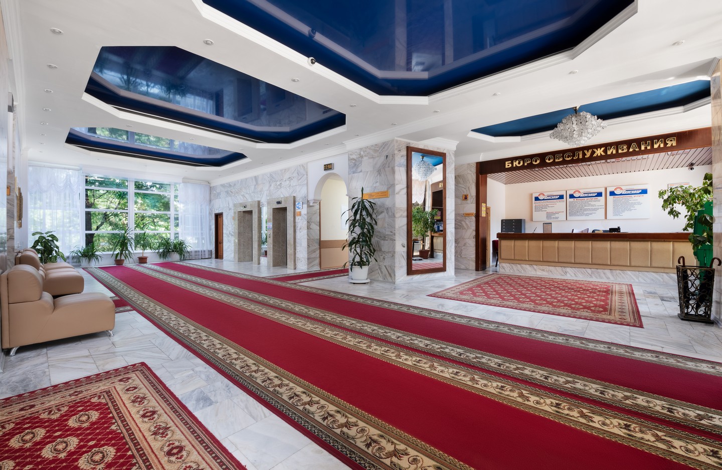 Для Вас также - собственная парковая зона отдыха, сауна с бассейном, парикмахерская, косметический кабинет, библиотека, бильярд, настольный теннис и открытый теннисный корт, волейбольная и баскетбольная площадка, кинозал и дискотека, бары, экскурсии и охраняемая автостоянка.