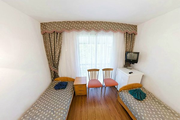 - 2-х местный номер 2-ой категории. В номере: две односпальные кровати, тумбочки прикроватные, журнальный столик , зеркало, шкаф для одежды, холодильник, телевизор, телефон, кондиционер, бра, люстра, санузел с душевой кабиной, французский балкончик с видом на парковую зону и Генуэзскую крепость.