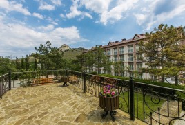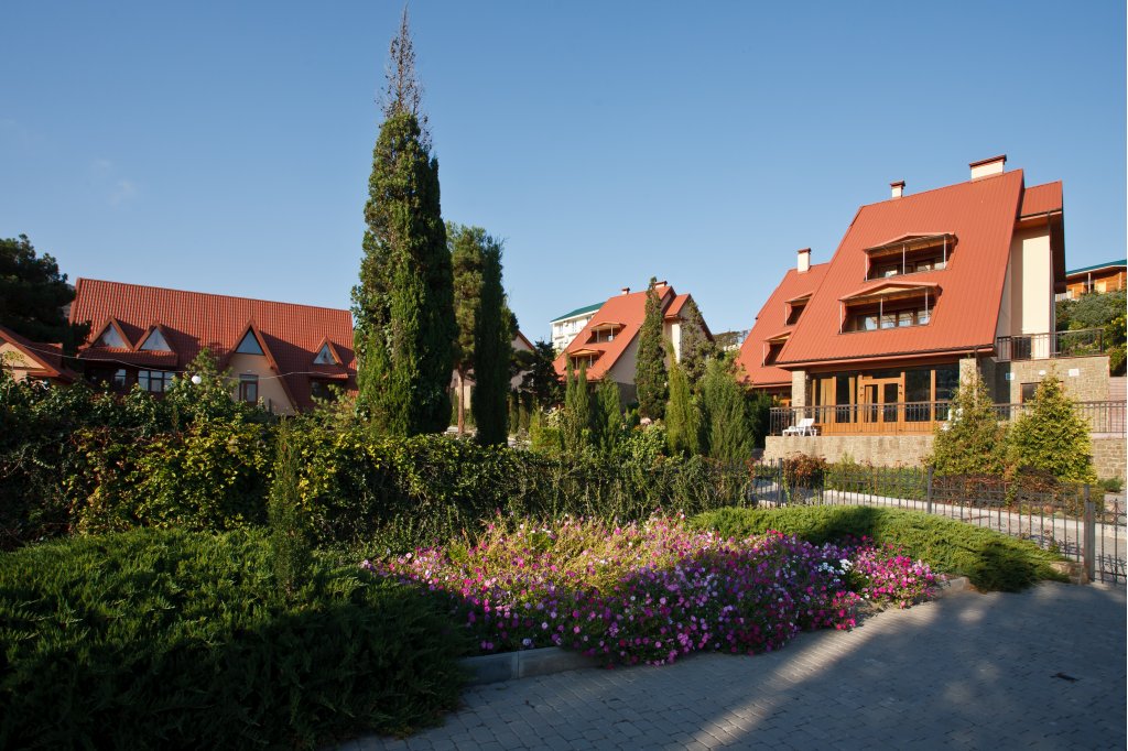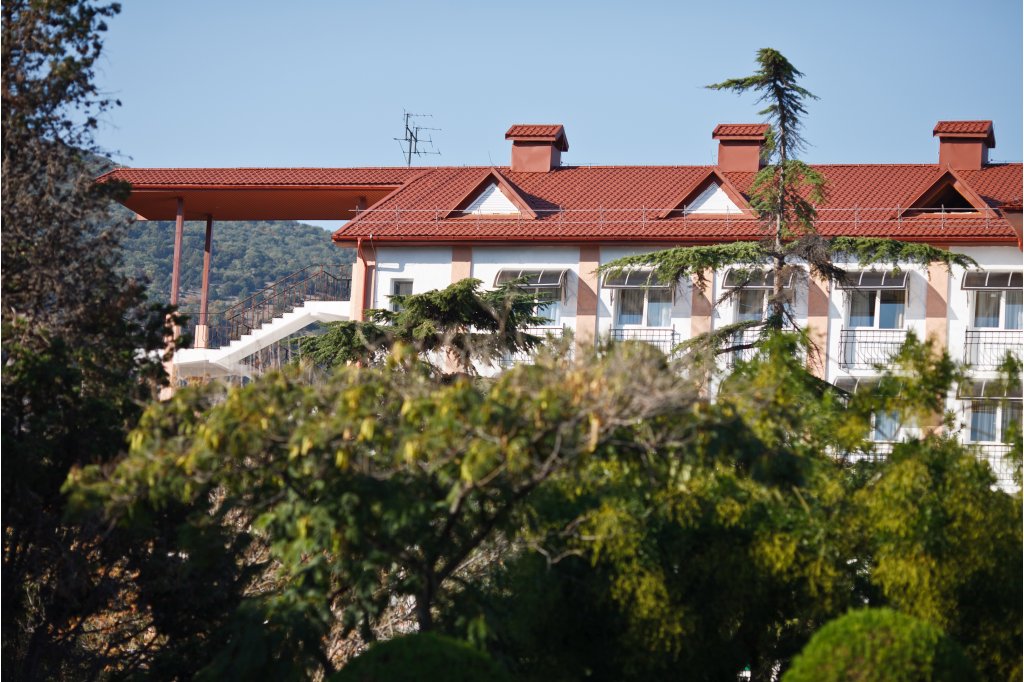 Вся территория 9,7 га представляет собой ухоженный тенистый парк с местными и экзотическими растениями, розарием и скульптурными украшениями. В пансионате созданы все условия для спокойного и активного отдыха круглый год. Территория пансионата круглосуточно находится под охраной.