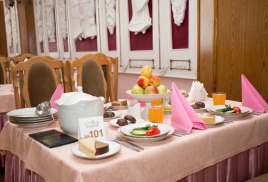 Питание: 3-х разовое «меню-заказ»; для проживающих в номерах Люкс - расширенное меню.