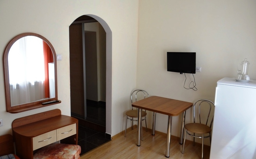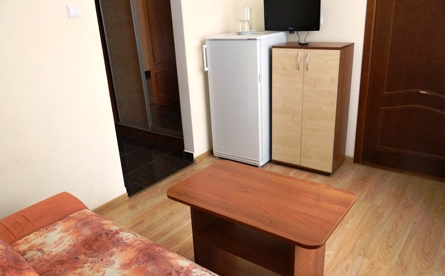 - 1-но местный 1-но комнатный с 2-х спальной кроватью (возможно 2-х местное размещение) c удобствами в номере (душ, туалет, умывальник): ТВ, холодильник.