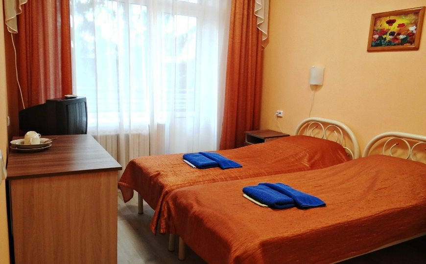 - 2-х местный 1-но комнатный c удобствами в номере (душ, туалет, умывальник): ТВ, две кровати.