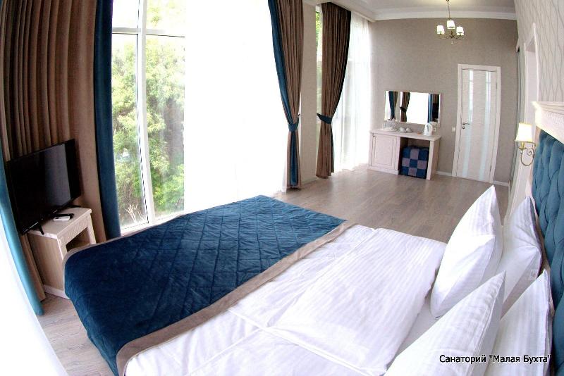 - Студия, однокомнатный, 2х местный "Бриз": однокомнатный, 2 раздельные кровати, диван, кресло, стол, тумбочки, шифоньер, санузел (душ), S=30 м2, кондиционер, ламинат, ТВ, холодильник, балкон, вид на море, расположение прямо на пляже.