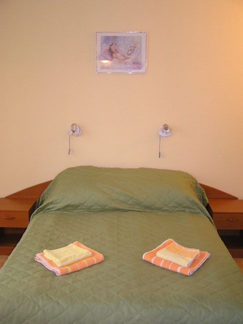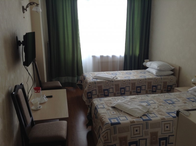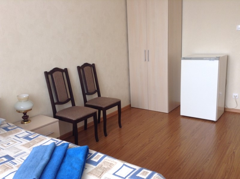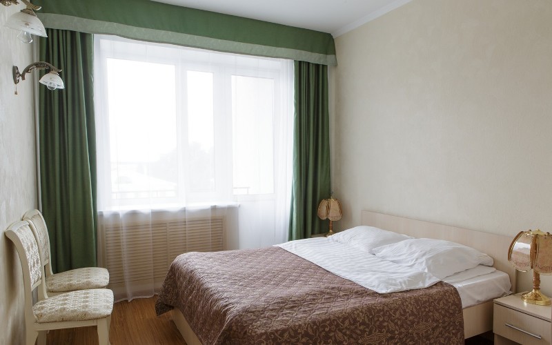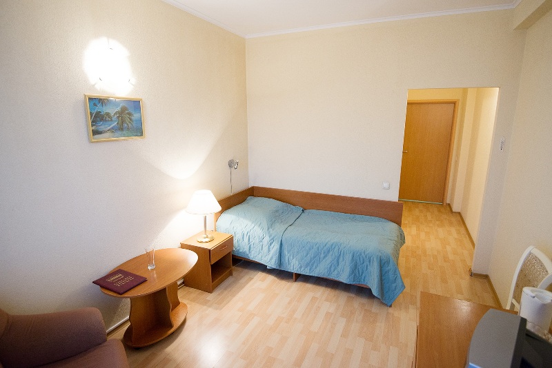 - 2-х местный 1но-комнатный стандарт (корпус А, Г). Полощадь: 12-14 кв.м. В номере: две 1,5-спальные кровати, тумбочка, стул, столик, шкаф для одежды, телевизор, холодильник, санузел с ванной, лоджия.