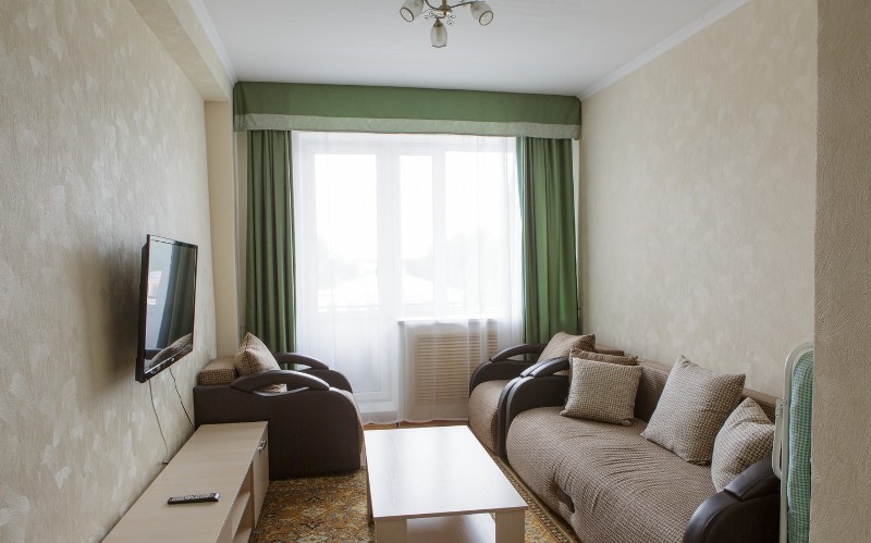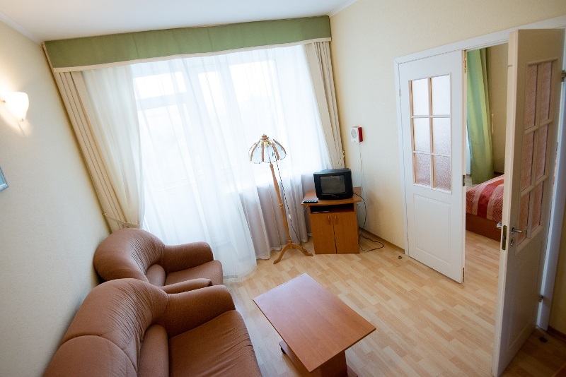- 2-х местный 2-х комнатный (корпус А). ремонт 2015г. Площадь: 22-30 кв.м.. В номере: прихожая со шкафом для одежды; спальня (одна двуспальная кровать (160х200), две тумбочки); гостиная (набор мягкой мебели, столик журнальный, телевизор, шкаф-купе для одежды, шкаф для посуды и индивидуальных принадлежностей; холодильник; санузел с душем или ванной; лоджия.