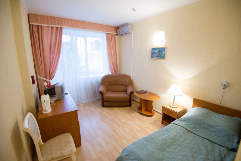 - 1-но местный 1-но комнатный стандарт (корпус А, Г). ремонт 2015 г. Площадь 10-12 кв.м. В номере: 1,5-спальная кровать, тумбочка, стул, столик, шкаф для одежды, телевизор, холодильник, санузел с душем, лоджия.
