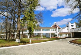 Размещение: Четыре 5-ти этажных спальных корпуса с лифтом (А, Г, Д, Е) соединены теплым переходм со столовой (корп. Б и Ж) и лечебным корпусом (корп. В).