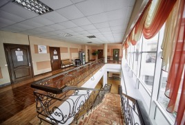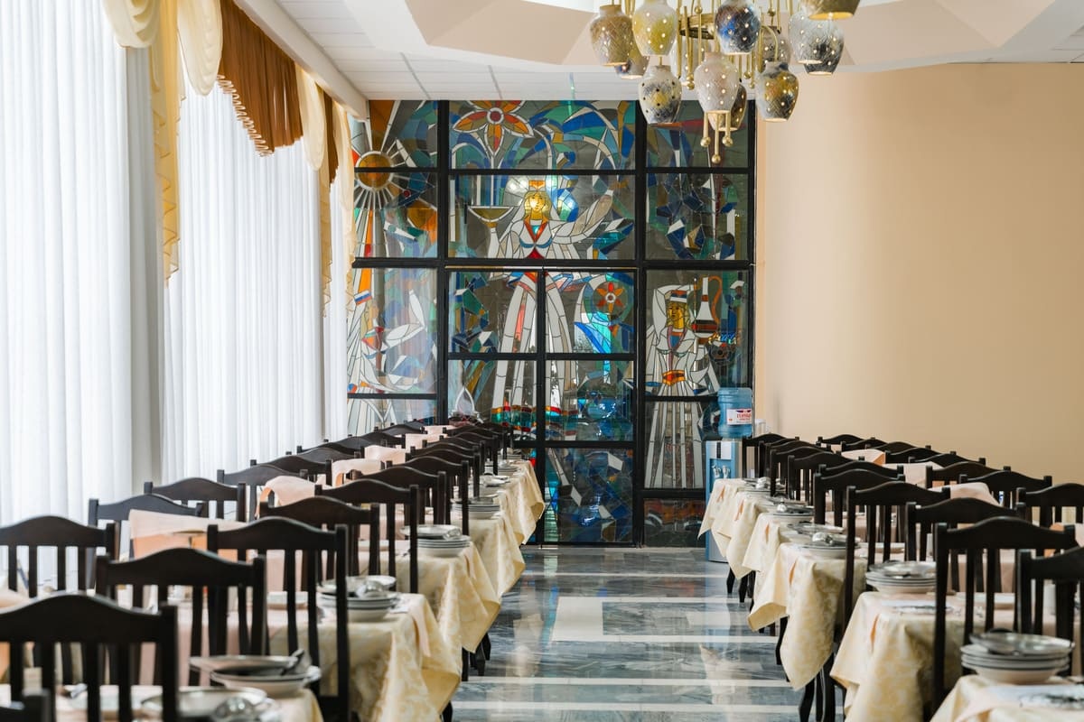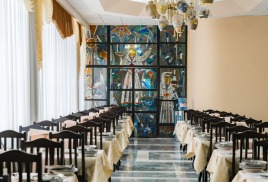 Уютный, оформленный со вкусом обеденный зал, рассчитан на одновременный прием более 300 посетителей. Комфортная атмосфера столовой, дополняемая внимательным и предупредительным отношением обслуживающего персонала, способствует приятному приему пищи, которое принесет и пользу, и удовольствие.