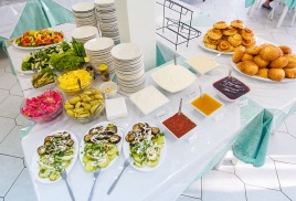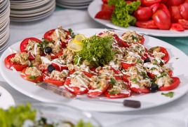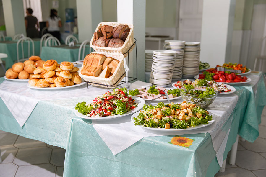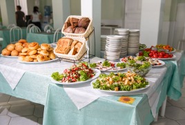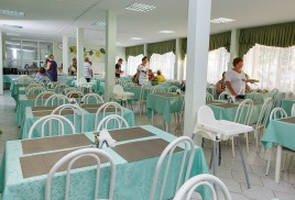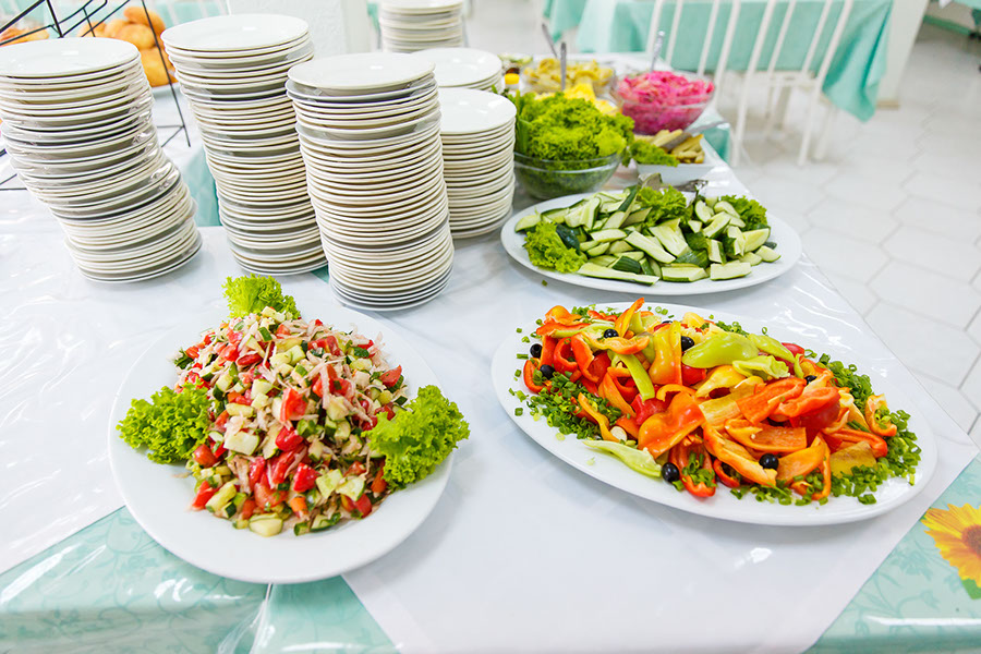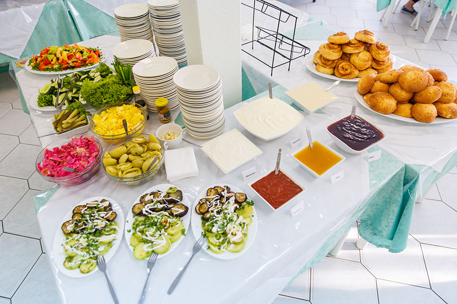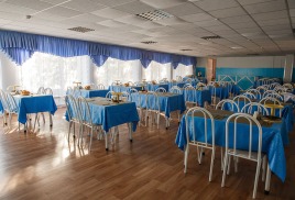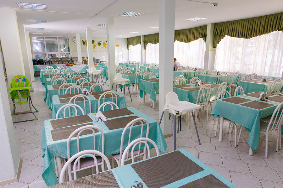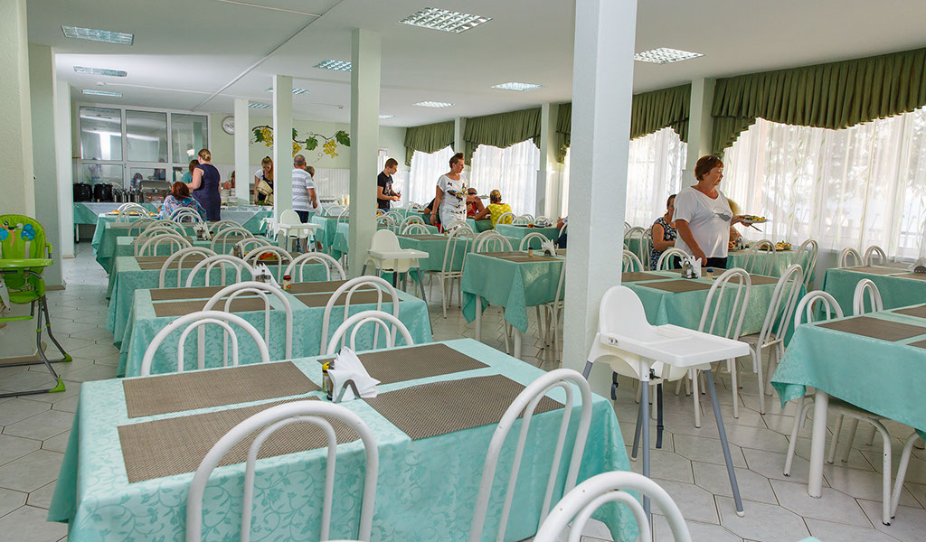 Организовано трехразовое полноценное питание по системе "Шведский стол" (завтрак, обед, ужин), входящее в стоимость путевки.