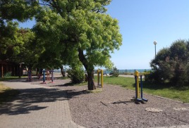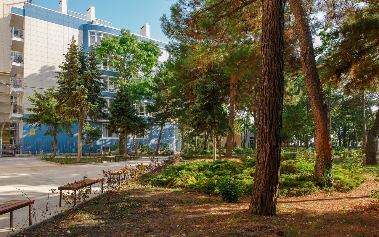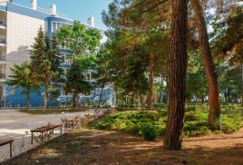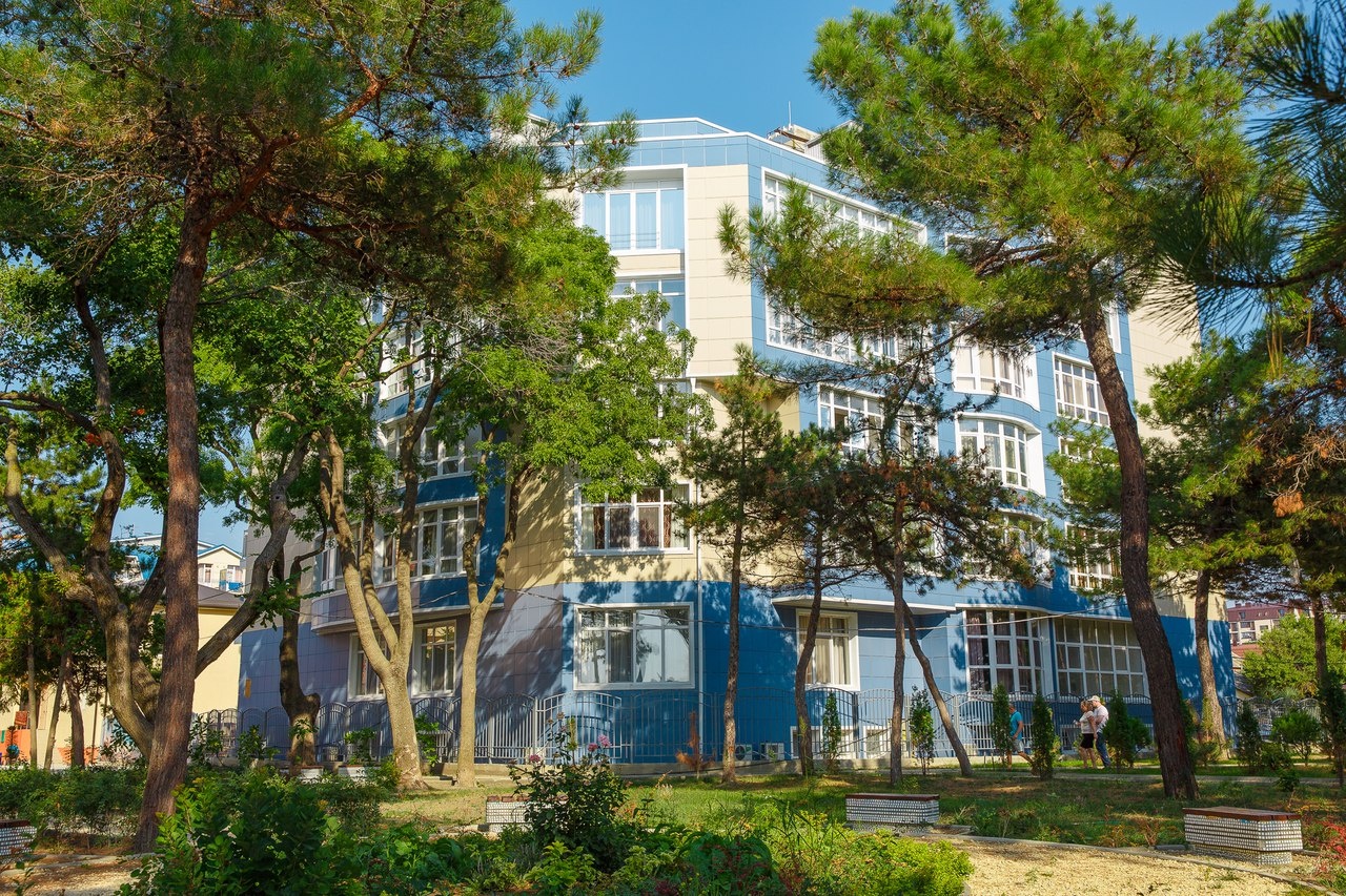 Санаторий расположен в 10 метрах от самого моря на 8600 кв.м., в экологически чистой курортной зоне. Это территория повышенной рекреационной нагрузки. Здесь предусмотрены зоны активного отдыха в виде спортивных площадок (волейбольная, баскетбольная, настольный -теннис), зоны для прогулок, группового общения и просто спокойного коллективного отдыха.