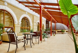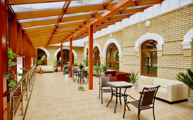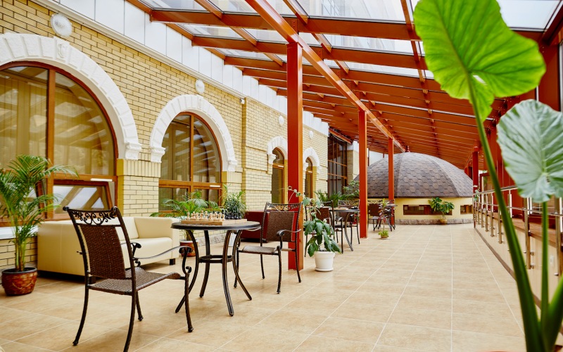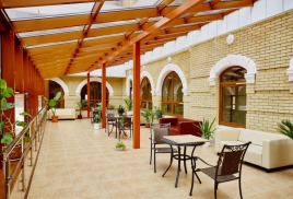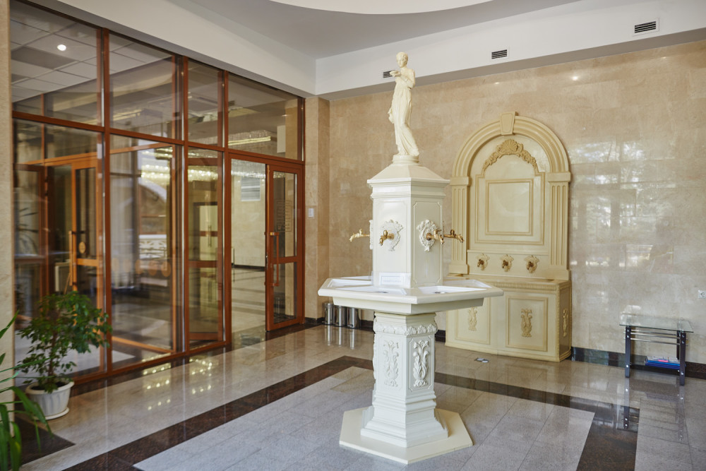 Есть SPA-комплекс, оснащенный бассейном, сауной, солярием, хаммамом, и эффективное оздоровление будет сочетаться с приятным отдыхом. На территории есть собственные бюветы с минеральной водой.
