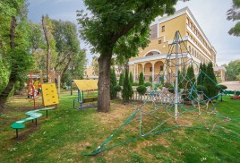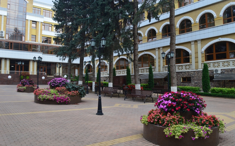 Санаторий находится неподалеку от главных транспортных узлов города, рядом ЖД вокзал, живописный парк, центр города. На цветущей и ухоженной территории здравницы есть все для максимально комфортного и приятного отдыха. Теннисный корт, детская площадка, изящные беседки, зимний сад – все это МЧС Кисловодск. Ухоженные цветущие клумбы, прекрасные журчащие фонтаны и красивый архитектурный ансамбль не оставят вас равнодушными.