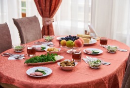 Питание сформировано по системе меню-заказ, 4-х разовое. Приветствуется индивидуальный подход, и каждый гость сможет составить ассортимент блюд, которые придутся по вкусу. При желании квалифицированные диетсестры помогут в формировании персонального меню.