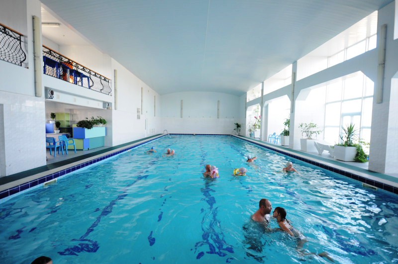 В санатории функционирует крытый бассейн с морсокой водой с подогревом; длина 25 м, ширина 8,5 м.