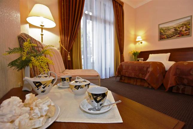 2-местный 1 категории комфорт. Однокомнатный номер с высокими потолками. Оснащен двумя односпальными кроватями, системой кондиционирования воздуха, холодильником - всем, что необходимо для комфортного пребывания во время прохождения лечения в нашем санатории. В номерах данной категории возможна установка дополнительного места. Практически во всех номерах есть балконы с видом на море или вечнозеленый парк.