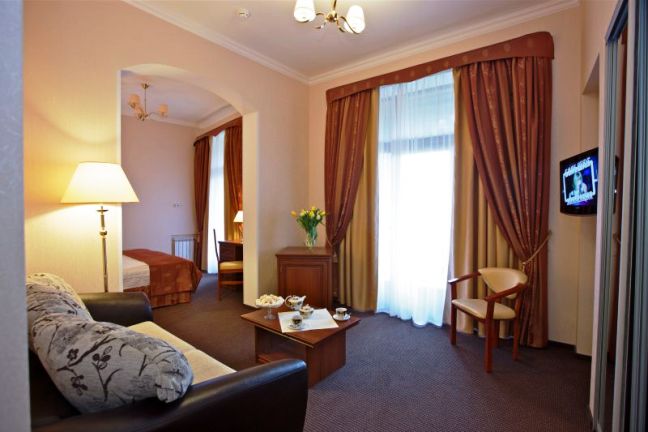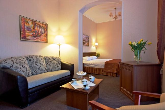 «Люкс» двухместный двухкомнатный. Две изолированные друг от друга комнаты с высокими потолками - спальня и гостиная, мягкая мебель, холодильник и сейф, балкон с мебелью, бесплатная охраняемая парковка - всё это мы готовы предложить клиентам, желающим окружить себя дополнительным комфортом.