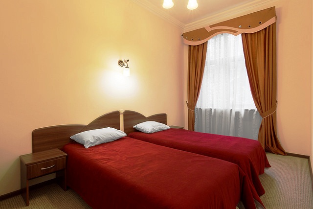 2-местный 1 категории. Однокомнатный номер с высоким потолкам площадью 16-18 кв.м. В номере собственная ванная комната, 2 односпальные кровати, шкаф, письменно-туалетный стол, две тумбочки система кондиционирования воздуха, холодильник - всем, что необходимо для комфортного пребывания во время прохождения лечения в нашем санатории. В некоторых номерах данной категории возможна установка дополнительного места. Номера расположены в восточной части корпуса с видом на парк, без балконов.