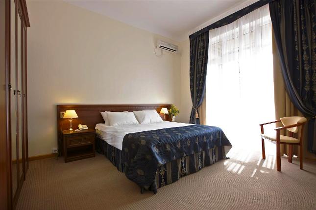 Джуниор Сюит. Просторный номер с высокими потолками, состоящий из прихожей, большой ванной комнаты и жилой зоны свободной планировки с неизолированными друг от друга спальней и гостиной, одним или двумя балконами с мебелью. В каждом номере есть кондиционер, телевизор, холодильник. С балкона открывается великолепный вид на море или вечнозеленый парк. Номер идеально подходит как для семейного отдыха с ребенком, так и для романтического путешествия.