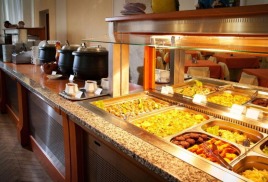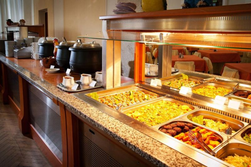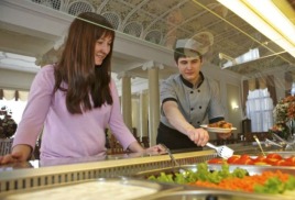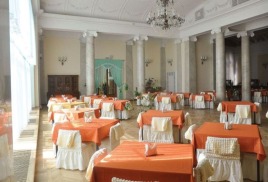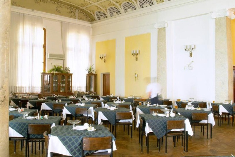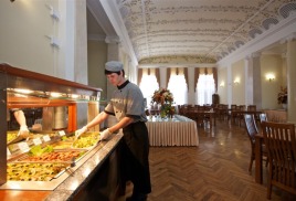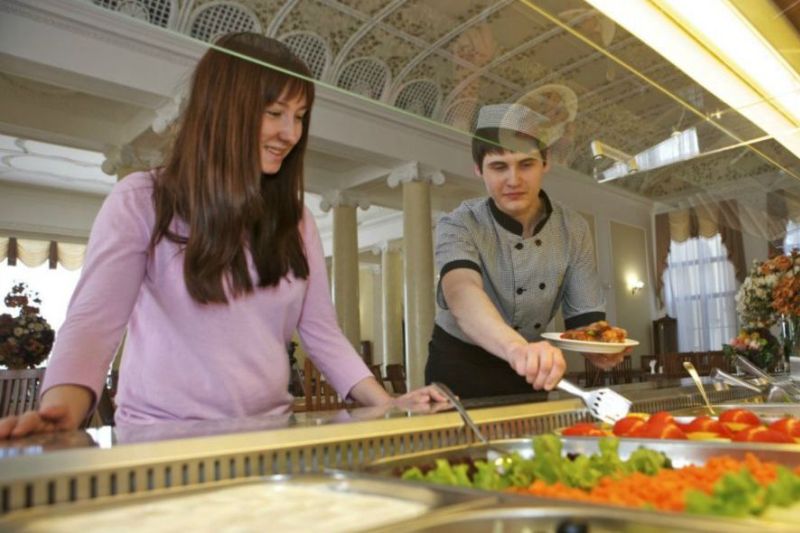 Питание в санатории осуществляется по системе «шведский стол». К услугам гостей разнообразное меню: свыше 40 наименований закусок, супов и горячих блюд, а также большой выбор фруктов и кондитерских изделий. Ваш лечащий врач может назначить диетическое питание. В тёплое время года мы открываем просторный балкон, чтобы вы могли одновременно наслаждаться едой и любоваться живописным видом на парк и море. Каждую среду мы приглашаем наших гостей на тематический обед, посвященный одной из кухонь мира.