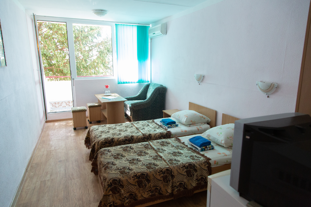 2-х местный стандарт. Площадь: 12-14 кв.м. В номере: две раздельные кровати, телевизор, холодильник, санузел с душем, балкон. Дополнительное место (еврораскладушка) возможно не во всех номерах.