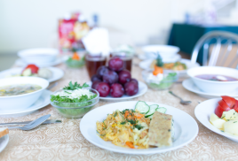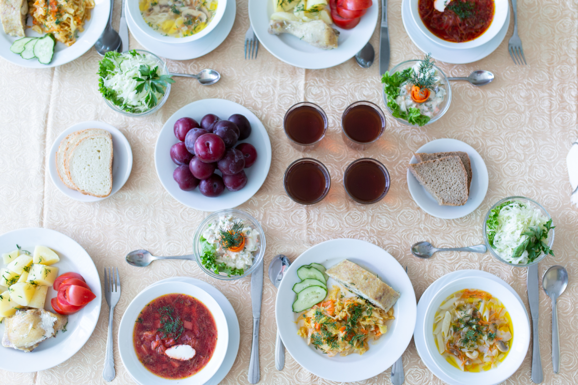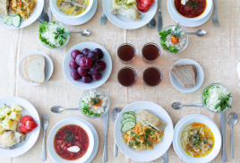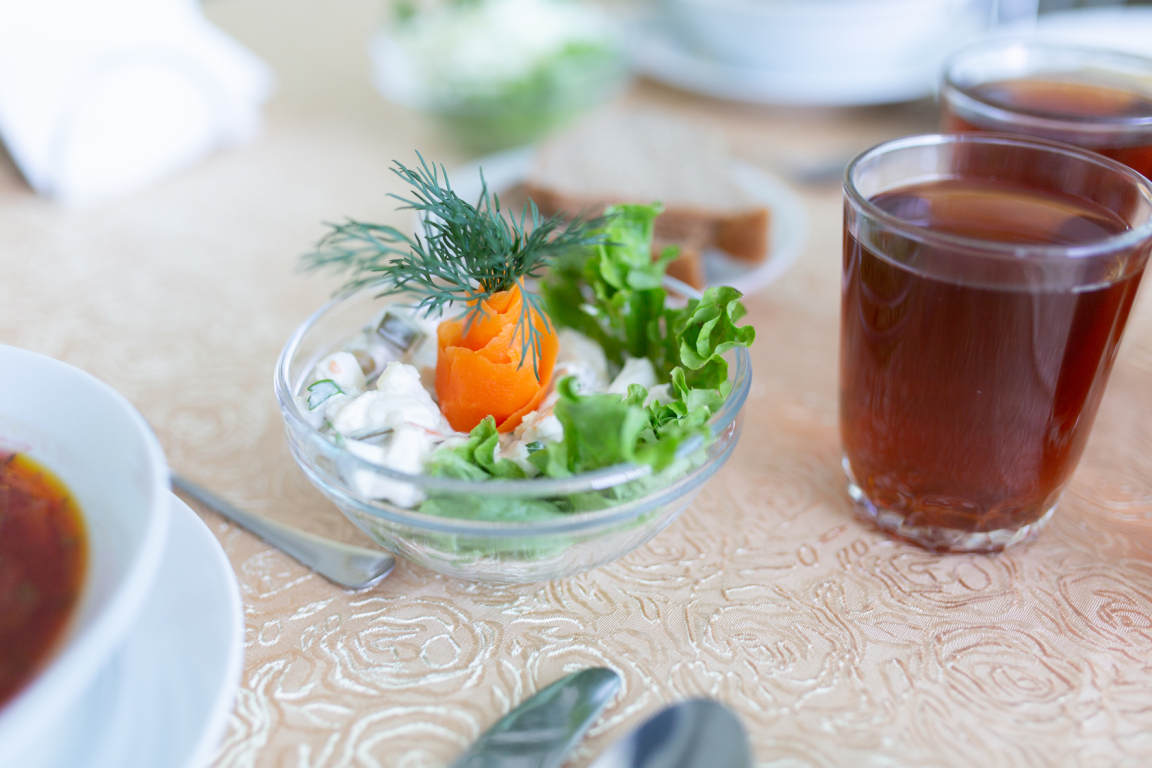 В меню включены холодные напитки (в т.ч. собственного производства), холодные закуски, салаты, первые блюда, вторые горячие блюда, гарниры, порционно сезонные фрукты, кулинарные изделия.