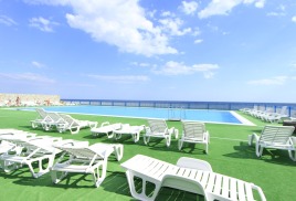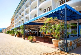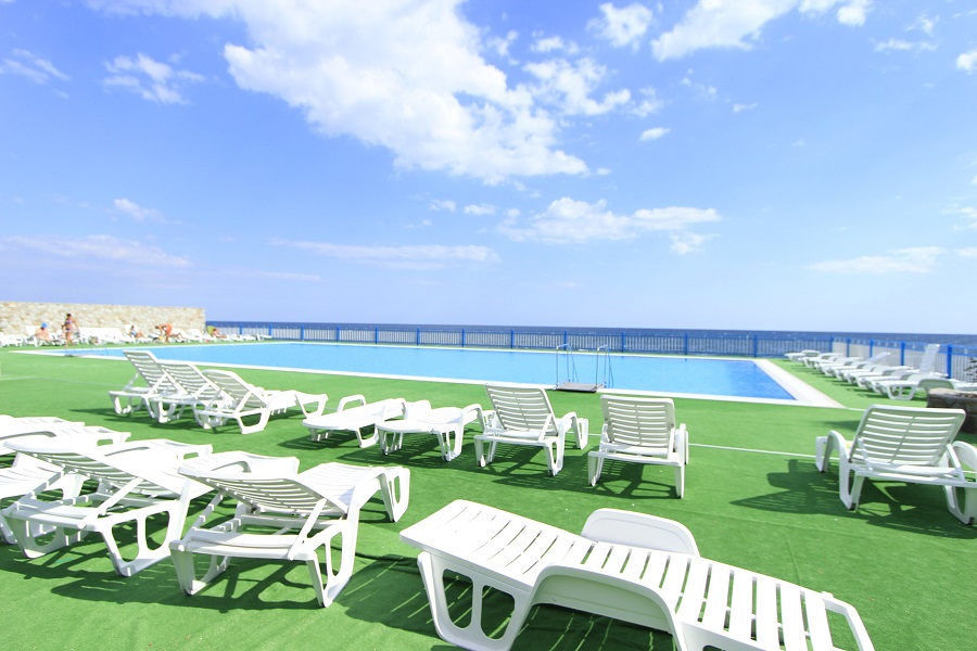 Также в стоимость проживания в отеле входит пользование тренажёрным залом, бассейнами с морской водой для взрослых и детей, пользование собственным пляжем, оборудованным теневыми навесами и шезлонгами, открытой автостоянкой, детской комнатой, интернетом, многофункциональной спортивной площадкой, пользование сейфом на стойке у администратора.