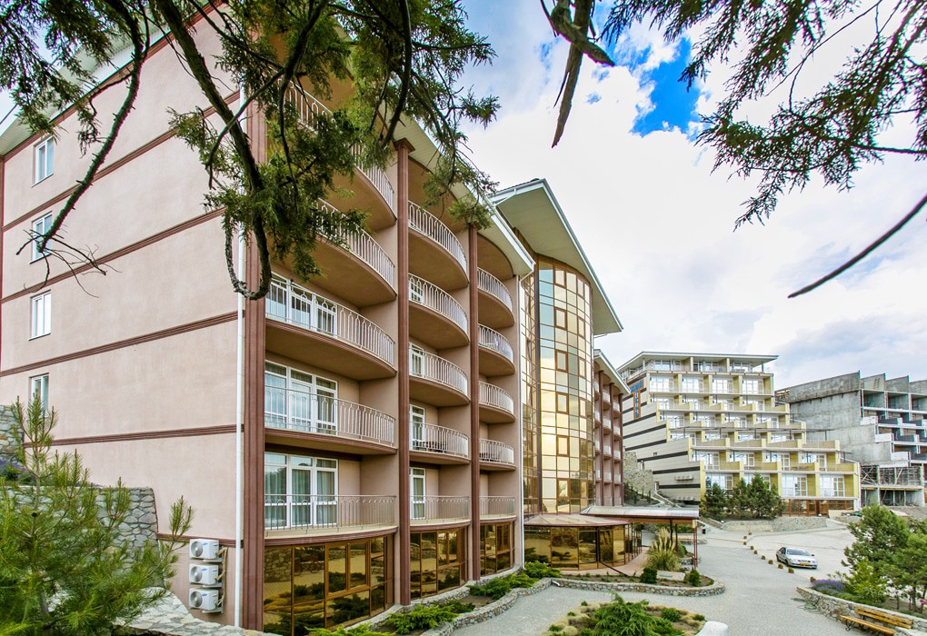 Территория отеля находится в окружении реликтовых южнобережных растений - многовековых деревьев можжевельника, фисташки и дуба. С берега бухты открывается великолепный вид: справа гора Аю-Даг (Медведь-гора), слева Дракон-гора (мыс Меганом).