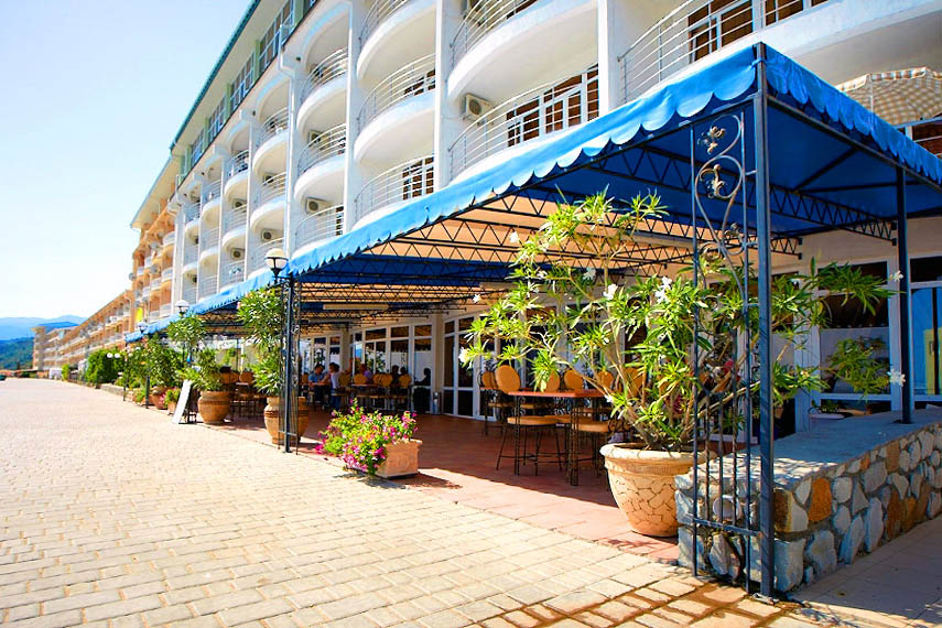 Для удобства Гостей отеля на территории расположен ресторан «Лимон» у самого берега моря, пиццерия «Лаванда», аптека, небольшие овощная и сувенирная лавки, аттракционы для детей, теннисный корт с профессиональным покрытием, экскурсионное бюро, сцена. Также за дополнительную плату можно воспользоваться услугами прачечной, прокатом автомобиля, прокатом детских колясок, заказать трансфер из аэропорта или любого другого уголка Крыма.