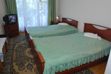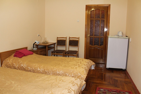 - 2-местный 1 категории 1-комнатный. Площадь 15 кв.м. В номере: две односпальные кровати, санузел с душем, телевизор, холодильник, электрочайник.