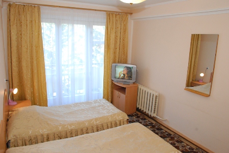 - 2-местный 2 категории 1-комнатный. Площадь 14 кв.м. В номере: две односпальные кровати, санузел с душем, телевизор, холодильник, электрочайник.