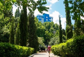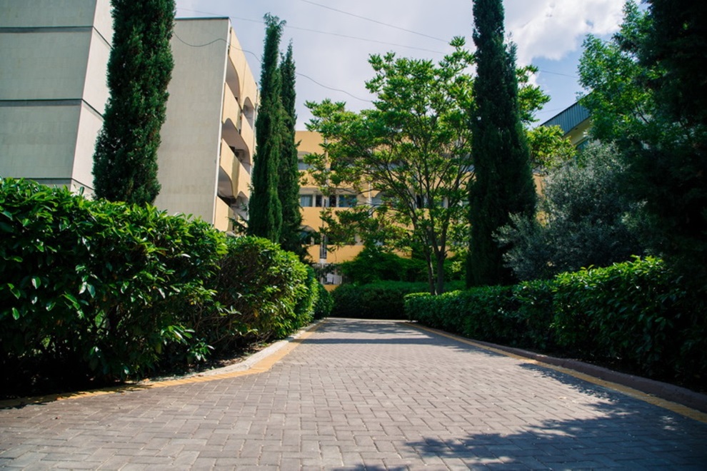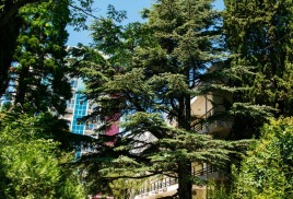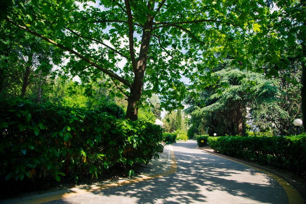 Площадь территории пансионата «Нева» составляет 4,5 га, большую ее часть занимает парк-памятник XIX века. В этом красивейшем парке произрастает более 200 видов растений, такие как магнолия, маслины, секвойя, кедры, лавровишня, миндаль, лавр и другие.