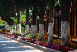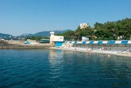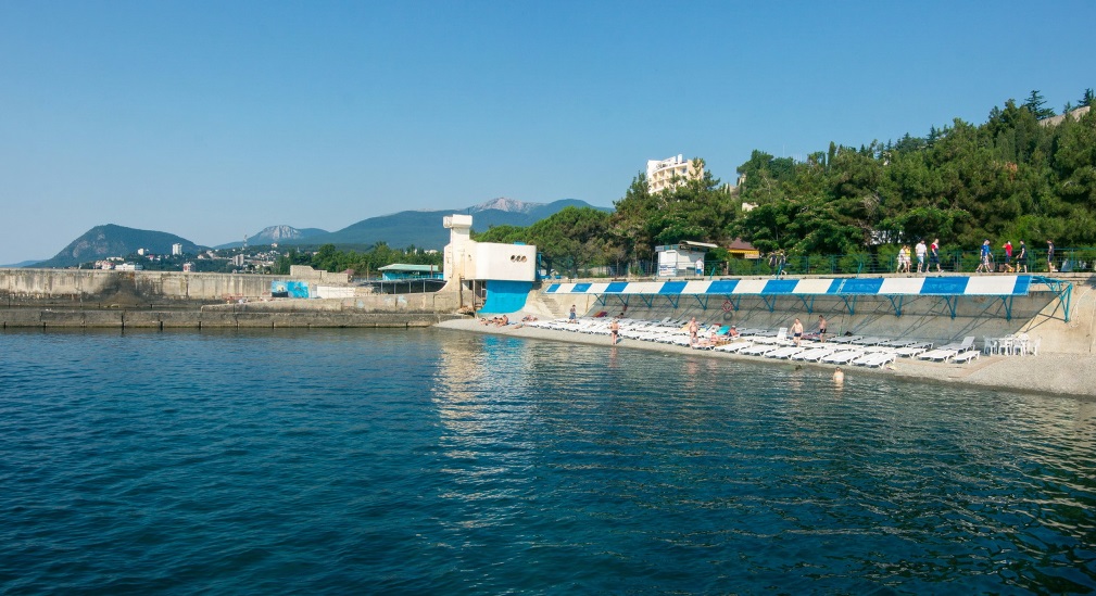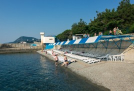 Пляж пансионата находится в 250м от корпуса. Пляж собственный благоустроенный мелкогалечный, общей протяженностью 180 метров, оборудованный современными шезлонгами (входят в стоимость), комфортными дорожками для спуска к морю и солнцезащитными тентами. Предоставляются пляжные полотенца.