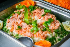 В пансионате организовано 3-разовое питание по системе «Все включено» с горячими блюдами и свежей домашней выпечкой, местными фруктами и овощами. Наши повара готовят по-домашнему из продуктов, произведенных и выращенных на территории Крыма. Кафе расположено в отдельно стоящем кондиционируемом здании вместимостью 100 человек.