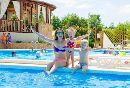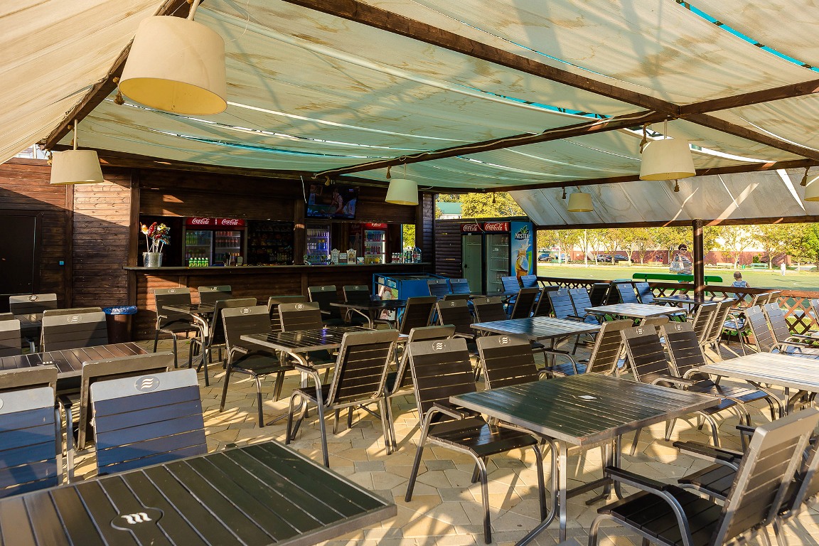 Пляж оборудован всем необходимым для комфортного и безопасного отдыха у моря. К услугам: лежаки, деревянные зонтики-навесы, медицинский пост, пост спасателей, туалет, уютное кафе с разнообразным меню, мороженым и прохладительными напитками. К услугам гостей пляжная анимация.
