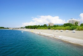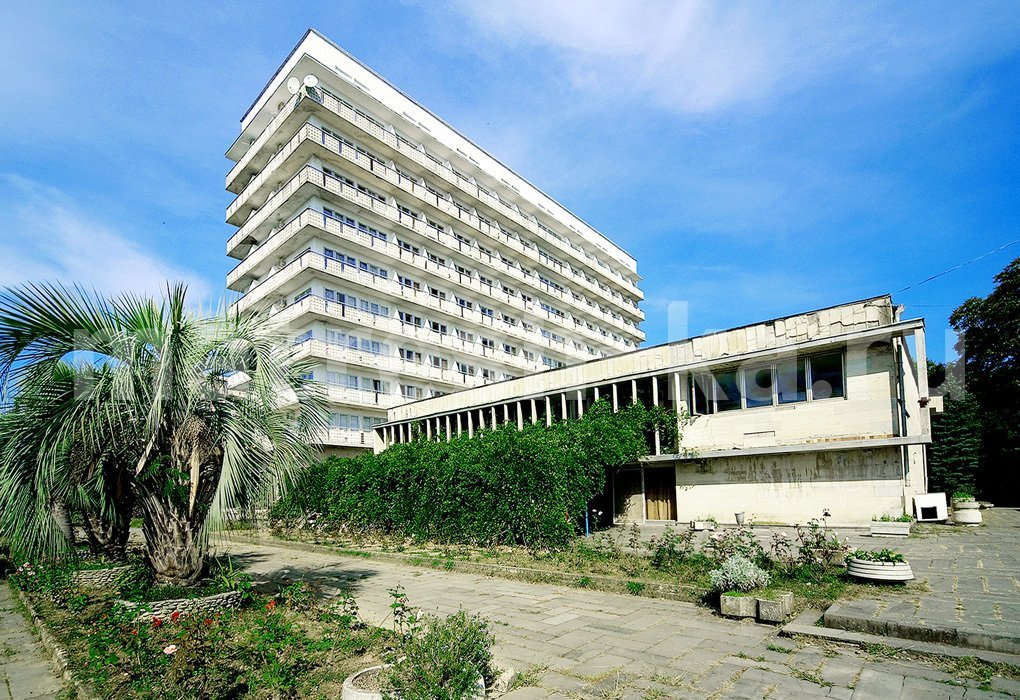 10-этажный корпус находится на самом берегу моря в 50 метрах от собственного песчано-галечного пляжа, оборудованного лежаками, зонтиками, навесами, кабинками для переодевания, душем.