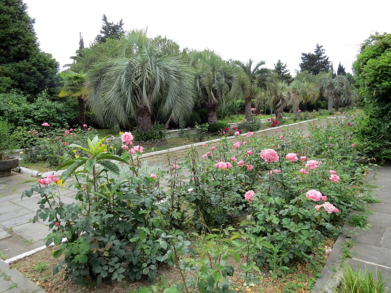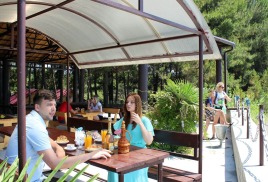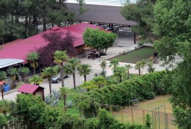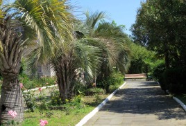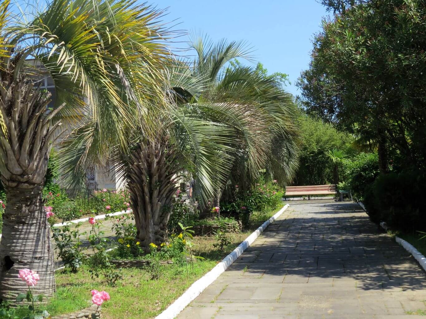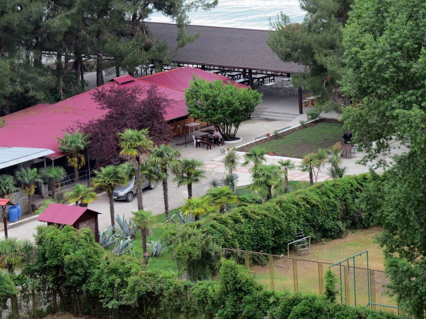На огромной собственной территории, расположился субтропический парк с тенистыми беседками и экзотическими растениями, в том числе с пицундской сосной и самшитом.