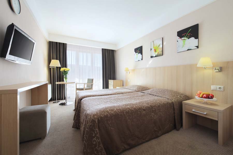 2-х местный 1-но комнатный Стандарт (91 номер). Площадь 18 м². В номере: две раздельные или одна большая кровати с ортопедическими матрасами, система кондиционирования воздуха, сейф, LCD-телевизор, мини-бар, электрический чайник, чайный набор, Wi-Fi, санузел с душевой кабиной, фен, халаты, тапочки, балкон. Дополнительное место еврораскладушка.