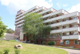 Спальный корпус с двухместными номерами со всеми удобствами расположен в 8-этажном здании санатория. Там же размещены лечебный корпус и столовая.