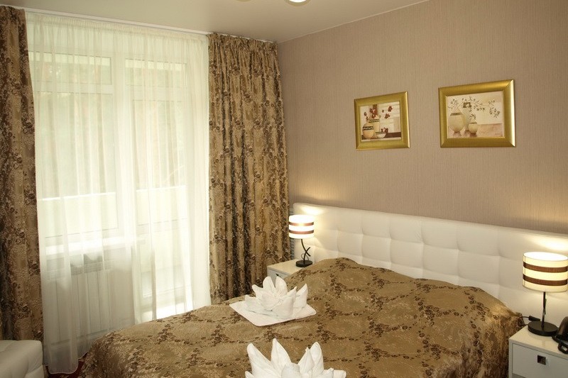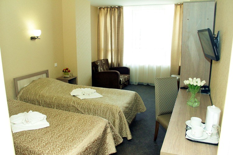 В номере: шкаф в прихожей, стол, тумбочки, стулья, телевизор (24 телеканала), фен, электрочайник, комплект полотенец, телефон,бесплатный безлимитный wi-fi, кровать (1,4-1,6 метра) или две кровати (по 90 см), холодильник, санузел, французский балкон.Дополнительно номера комплектуются креслом-кроватью (одним или двумя), которое может служить комфортным дополнительным местом.
