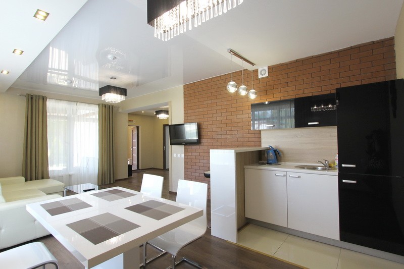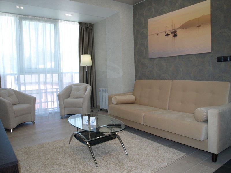- 2-х местный 2-х комнатный номер (корпус Приозерный, Лазурный) В номере: шкаф в прихожей, телефон, wi-fi, набор посуды, чайник, утюг, сушилка для белья, гладильная доска, в гостиной диван, кресло, стол, тумбочки, стулья, 2 телевизора(17 телеканалов), в спальне комод, кровать( 1,6 м.), холодильник, санузел, душ, фен, сейф.