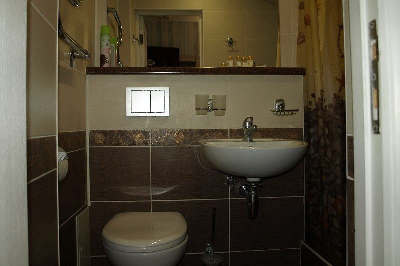 В номере: двухспальная кровать(1.4м), шкаф в прихожей, набор посуды,чайник, стол, тумбочки, стулья, телевизор (17 каналов), фен, холодильник, телефон, wi-fi, санузел, душ, балкон.