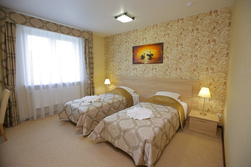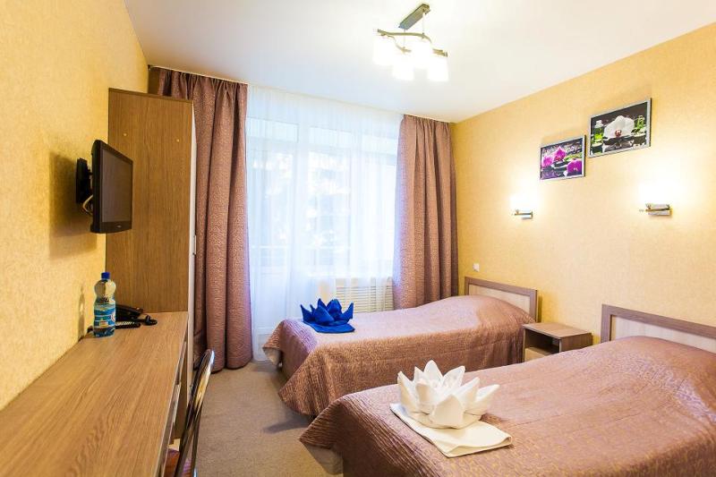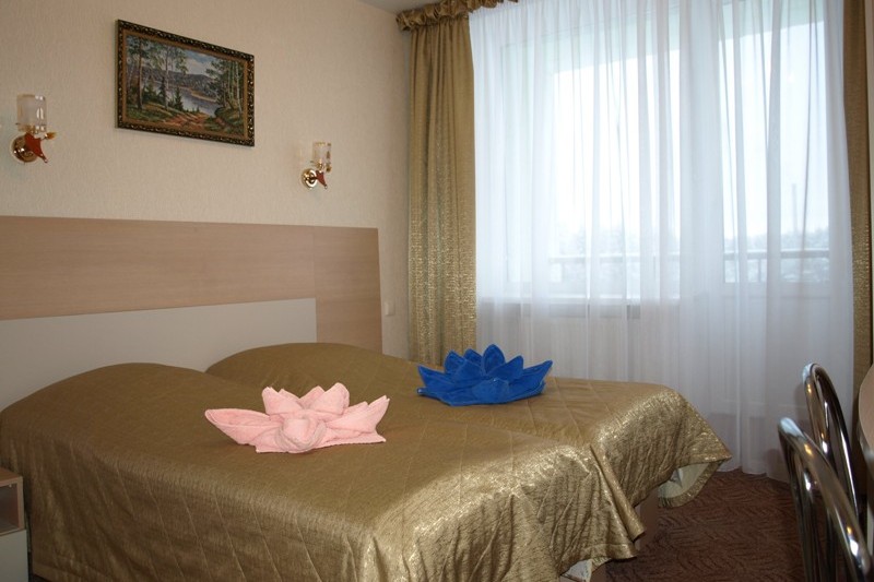 - 2-х местный 1-но комнатный номер с двумя односпальными кроватями (twin) (корпус Приозерный, Лазурный). В номере: 2 односпальные кровати, шкаф в прихожей, набор посуды,чайник, стол, тумбочки, стулья, телевизор (17 телеканалов), холодильник, фен, телефон, wi-fi, санузел, душ, балкон.