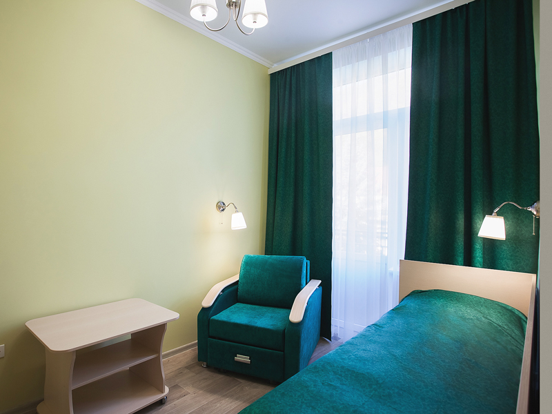 1-но местный +. Площадь 12 м2. В номере: односпальная кровать, кресло, душ, туалет, телевизор, холодильник, электрочайник, фен, кондиционер. Доп. место.