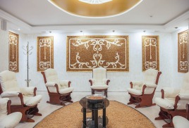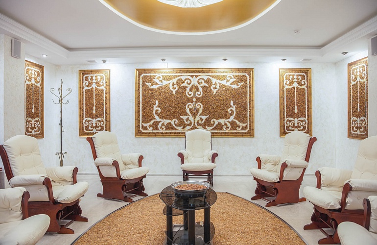 - бассейн (6х12 м) современный плавательный бассейна, джакузи с системами гидро и аэромассажей, блоком саун: финской, соляной, турецкой (хамам).