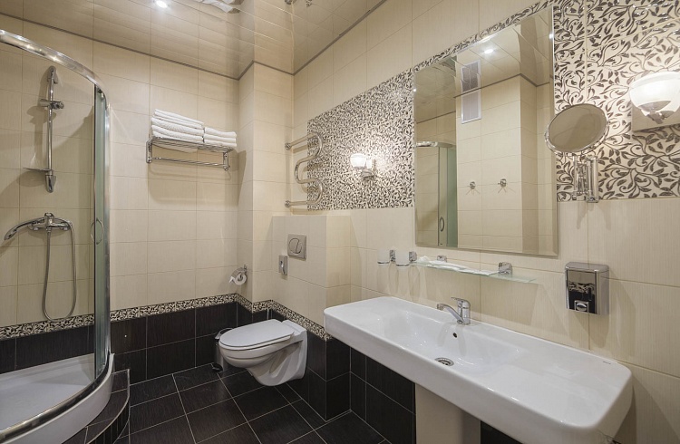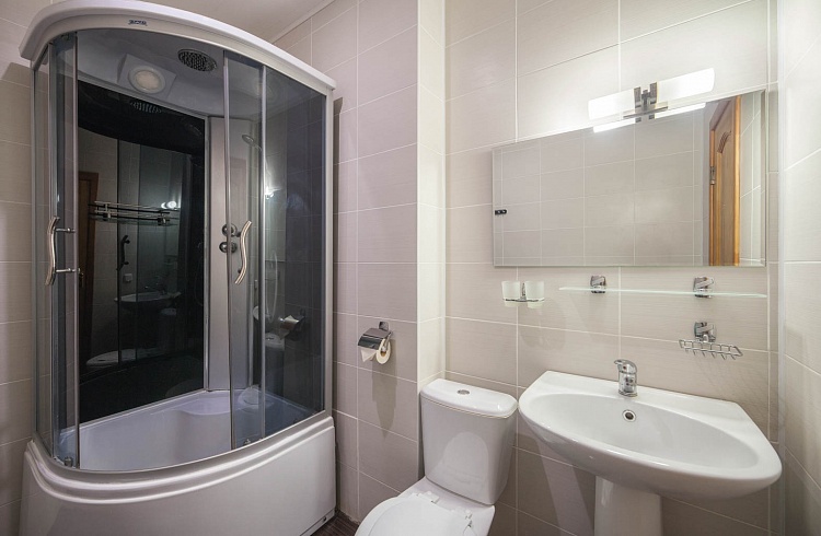 - 1-но местный 1-комнатный номер «Повышенной комфортности». В номере: душ, умывальник, туалет, ТВ, холодильник, фен, утюг, чайник, гладильная доска. телефон, набор посуды/ 2-х спальная кровать, шкаф-купе в прихожей, туалетный столик, стол-тумба.