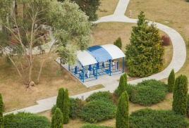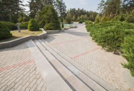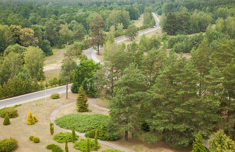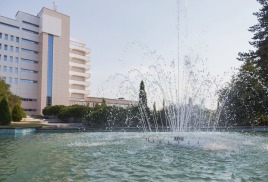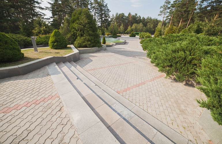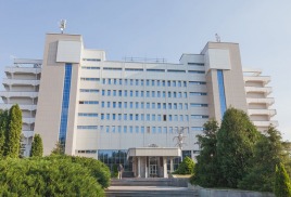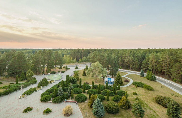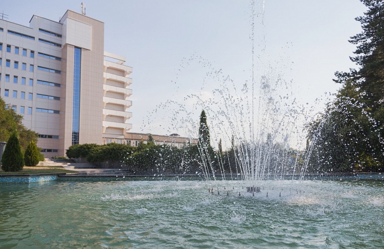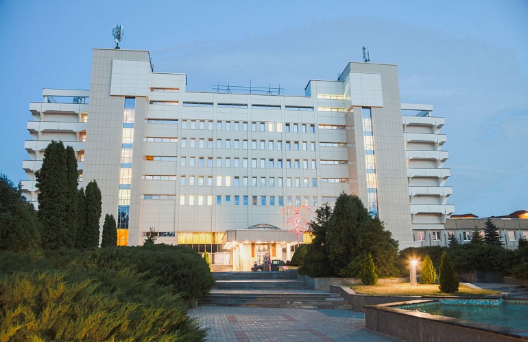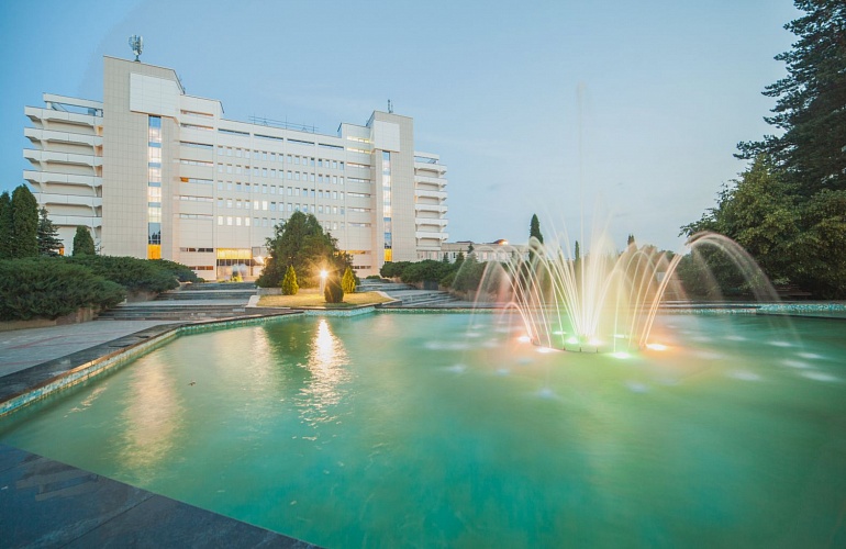 Главный корпус 8-ми этажное здание. Лечение и питание осуществляется в этом здании. В корпусе есть лифты. Жилые комнаты находятся на 4, 5, 6, 7, 8-м этажах. Для отдыхающих с ограниченными физическими возможностями есть специализированный лифт и пандусы.